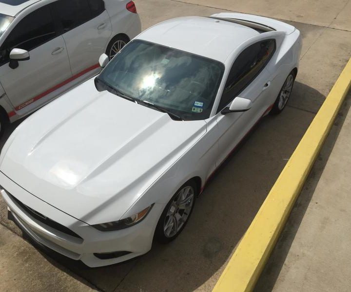 The 2015 Mustang was purchased new with the Ford Performance Package option (wheels, tires, brakes and prototype components, hand-built by COBB Tuning’s R&D Center) and installed at their tuning facility in Dallas. The end result was amazing. Over 400 lb. ft. of torque at the rear wheels makes this dyno tuned Mustang quicker than many cars with more than twice the displacement.